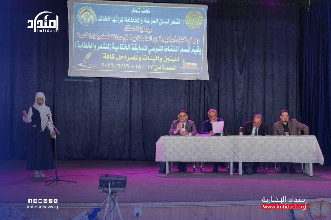 أطلق قسم النشاط المدرسي في مديرية مديرية تربية كربلاء المرحلة الختامية لمسابقة الخطابة والشعر لطلبة المراحل الدراسية كافة في محافظة كربلاء، تحت شعار «الشعر لسان العربية.. والخطابة تراثها الخالد»، وذلك برعاية المدير العام للتربية في المحافظة الأستاذ وميض خليل إبراهيم، للفترة من 17 إلى 19 / 2 / 2026.
