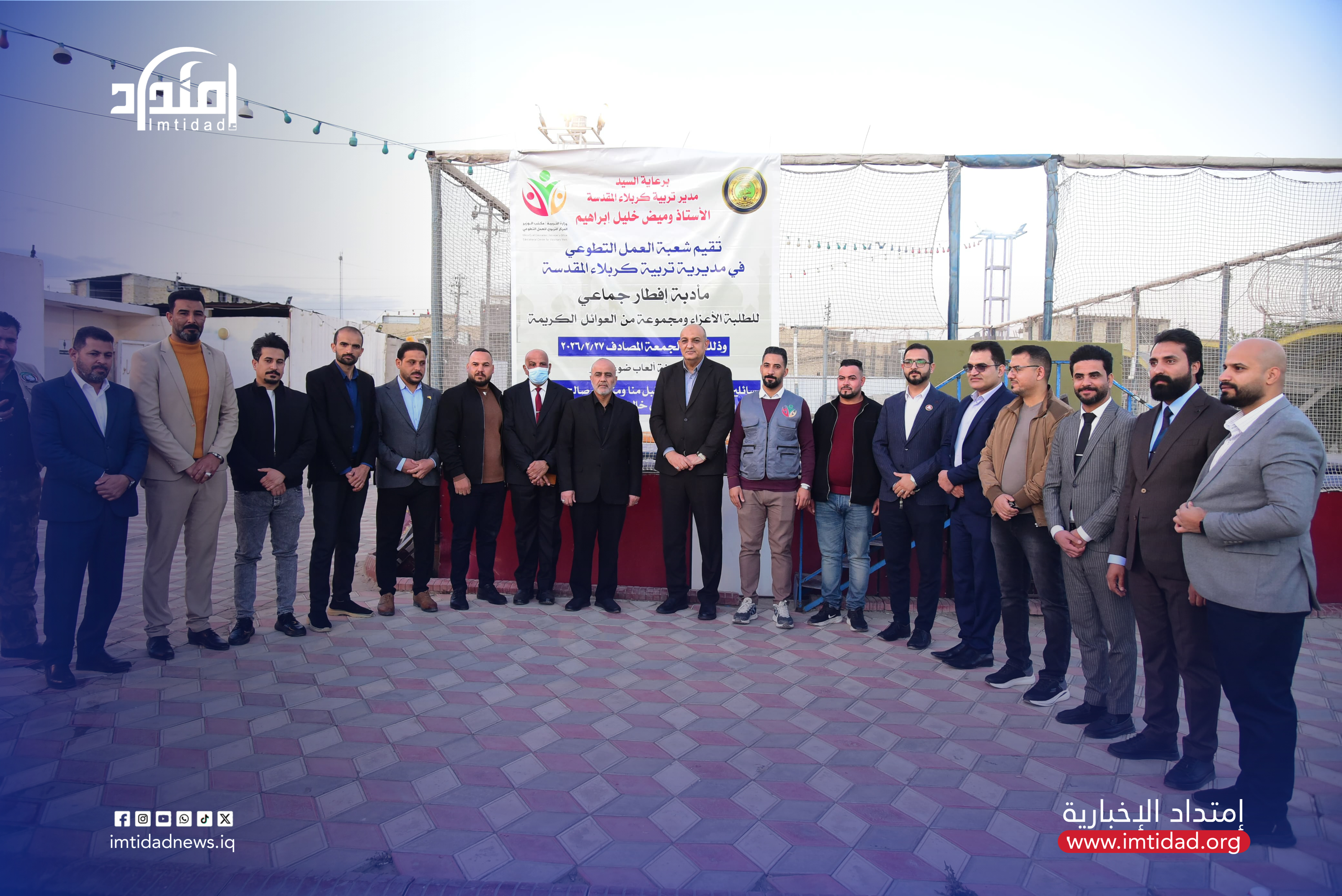 كربلاء – أقامت شعبة العمل التطوعي في مديرية تربية كربلاء المقدسة مأدبة إفطار جماعي للطلبة وعدد من العوائل الكريمة، برعاية مدير التربية الأستاذ وميض خليل إبراهيم، وذلك يوم الجمعة الموافق 27 شباط 2026، في مدينة ألعاب ضوء القمر.