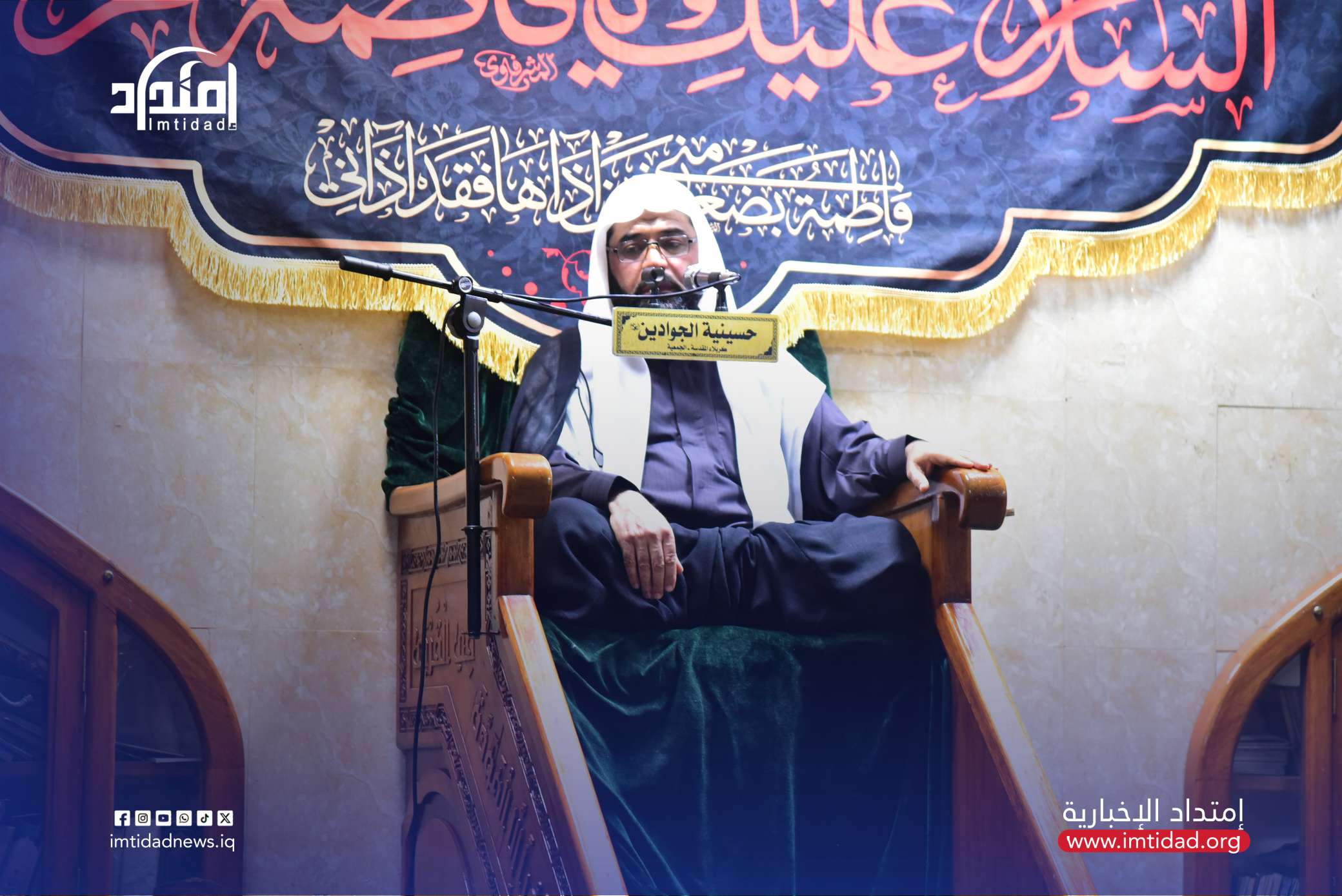 Karbala – Al-Jawadain Hussainiya hosted a mourning ceremony marking the martyrdom anniversary of the Mother of the Believers, Khadija bint Khuwaylid (peace be upon her), with a large gathering of believers in attendance to honor her legacy and pivotal role in supporting the early Islamic mission.